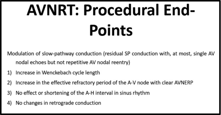Poiché queste due vie sono ben identificabili esse possono essere sottoposte alla procedura di ablazione transcatetere in radiofrequenza (ATC-RF). Inizialmente il target dell’ablazione era costituito dalla via rapida, ma essendo questa una struttura anteriore e molto vicina al NAV ed al fascio di His, l’intervento si complicava in circa il 20% dei casi con un blocco AV completo. Il target quindi si è spostato sulla via lenta che essendo posteriore e più lontana da strutture sensibili mostra una margine di sicurezza maggiore, dato che il blocco AV (BAV) completo in questo caso è descritto in meno dell’1% dei casi.