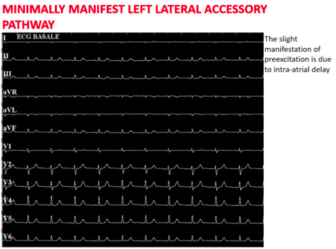 La figura sopra mostra come in condizioni basali siano poco evidenti i segni di preeccitazione ventricolare