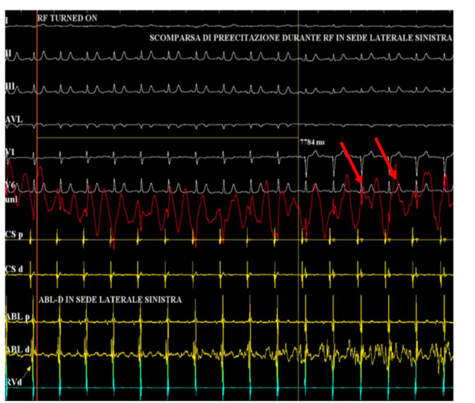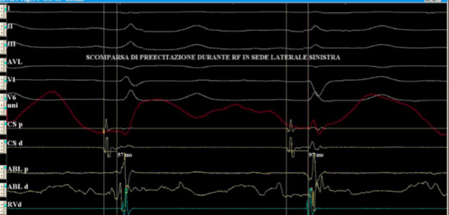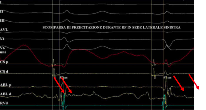 In tale sede si eroga radiofrequenza con scomparsa della preeccitazione ventricolare